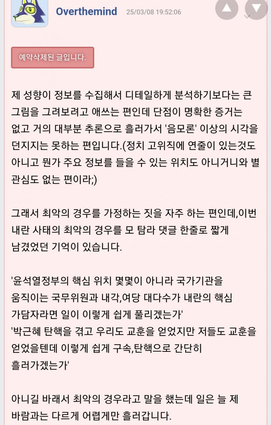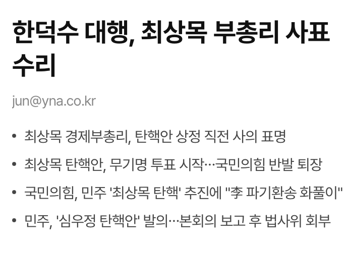 한덕수가 자정 예정이었는데, 최상목 사표 수리했다고 하네요.