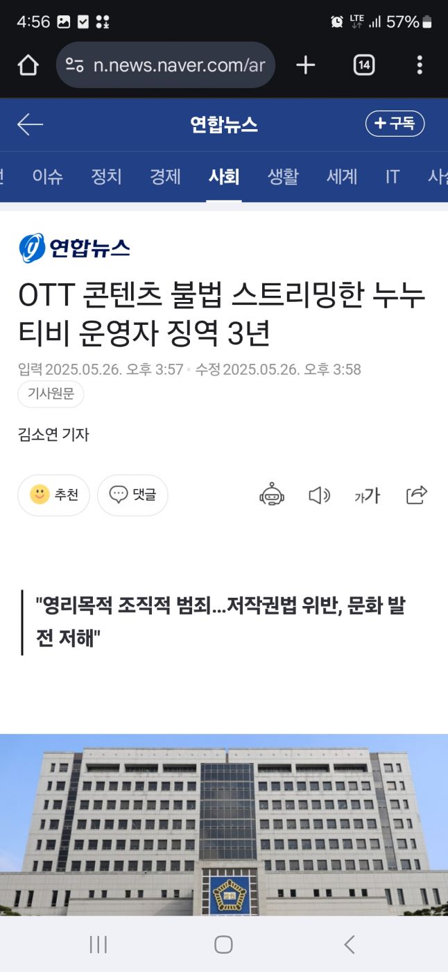 Subject   OTT 콘텐츠 불법 스트리밍한 누누티비 운영자 징역 3년