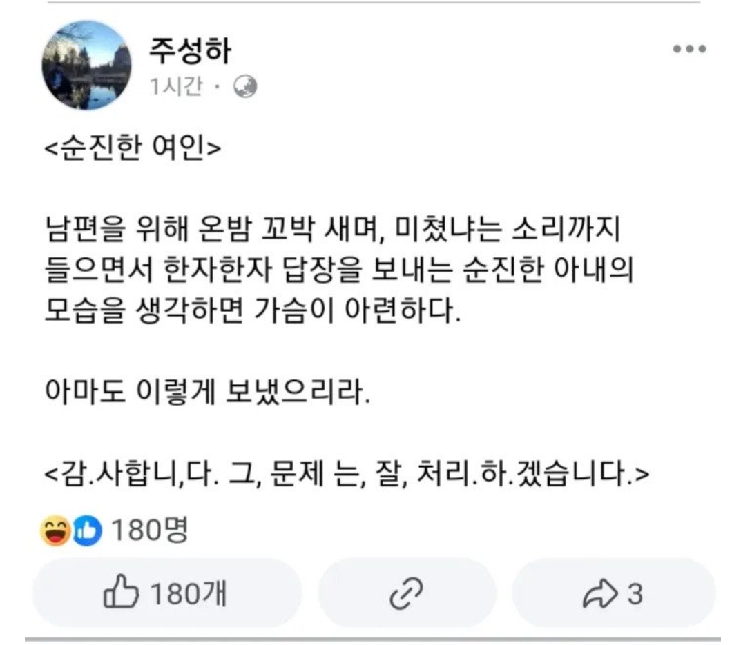 부인이 남편 대신 폰으로 답장을 해줬다는 내용도 뜨악하지만,
