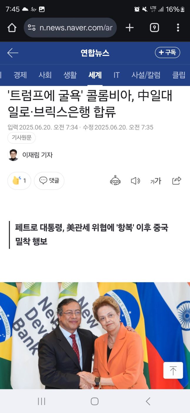2594 국제트럼프에 굴욕' 콜롬비아, 中일대일로·브릭스은행 합류 2 활활태워라 25/06/20 2188 0
