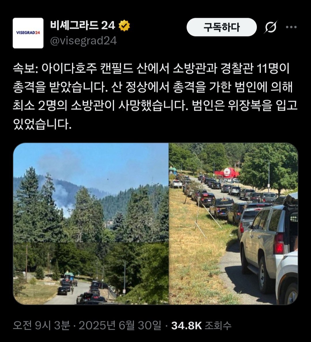 미국 아이다호 산불 진화 중이던 소방관들 총격 받아 2명 사망