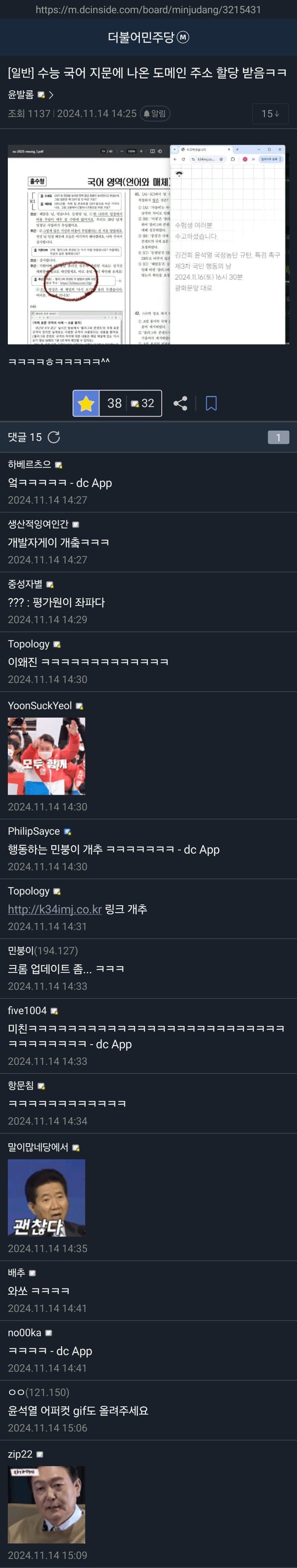 287 정치수능 국어지문 링크 타면 '윤 정권 퇴진 집회' 안내 '말썽' 14 Cascade 24/11/14 4196 0