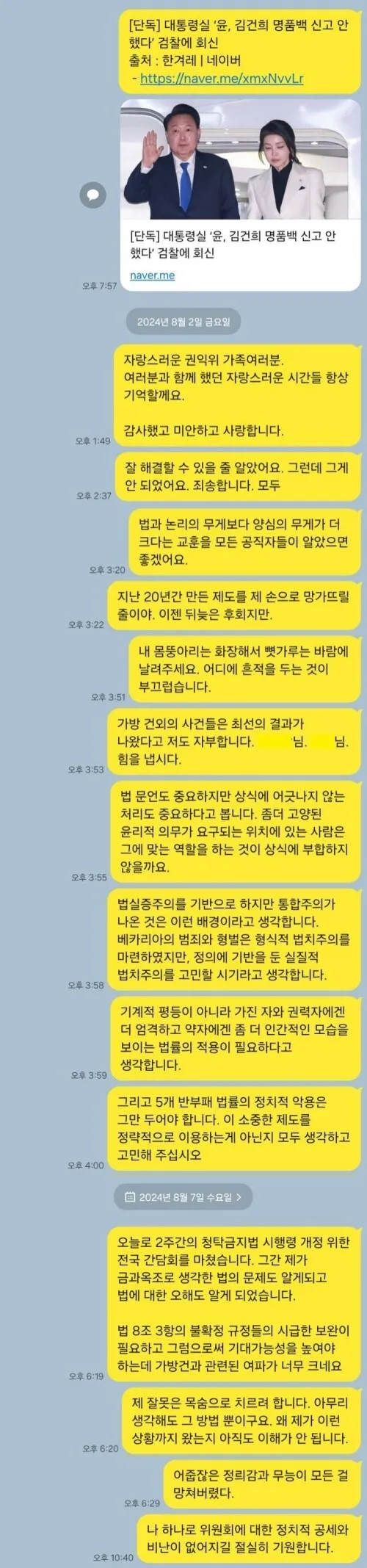 사회권익위 국장 유서…김건희 명품백 ‘면죄’ 괴로워했다 6 |