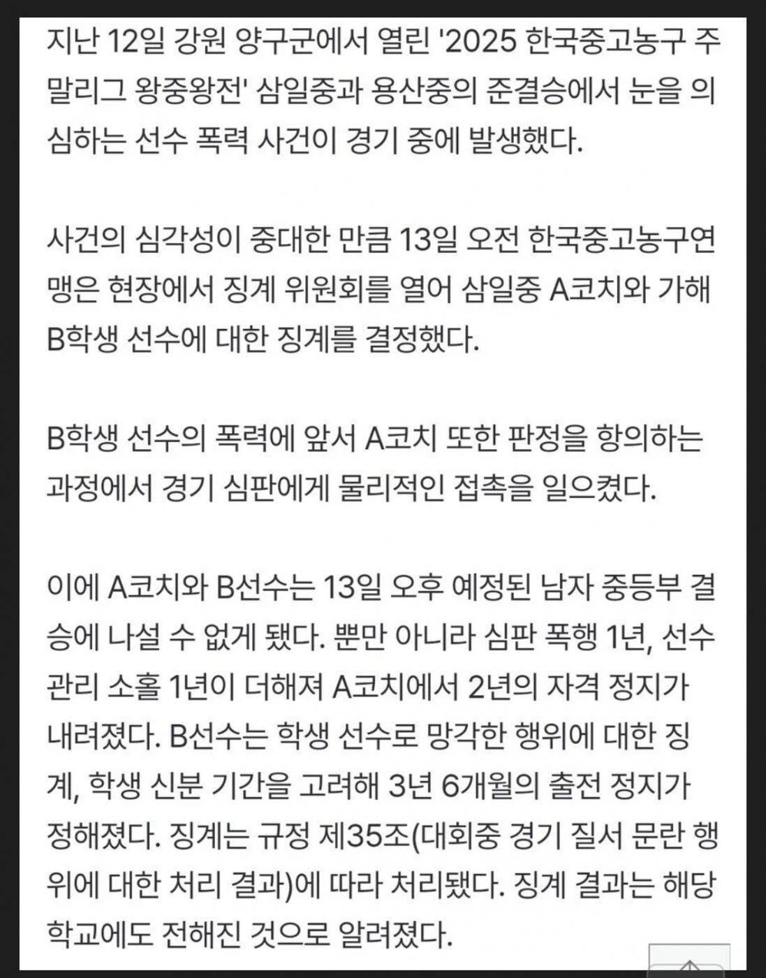 3186 스포츠승부보다 중요한 건 매너… 왕중왕전서 발생한 폭행 논란 37 swear 25/08/13 2161 0