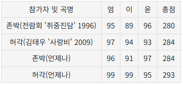 이 표는 그냥 보면 아 이 두 가수가 매우 훌륭한 참가자들이었구나 하고 볼수도 있지만