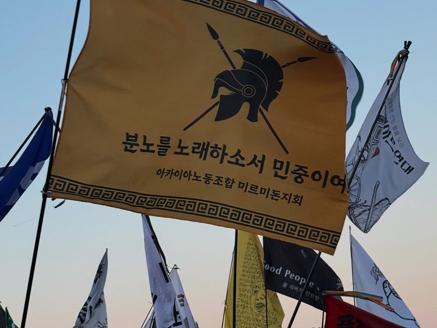 2024년 12월 28일 오후 5시. 이른 일몰이 찾아온 광화문 광장은 어둑어둑했다. 차가운 겨울 공기가 낮게 깔린 그날의 광장을 밝힌 건, 각양각색의 응원봉과 '윤석열 탄핵'을 외치는 시위 소리, 그리고 바람에 나부끼는 깃발들이었다. 매주 탄핵 집회에 참가하던 석민주(여, 29)씨도 그날 깃발을 품에 안고 광장에 나섰다. 평소 좋아하던 호메로스(Ὅμηρος)의 <일리아스(Ἰλιάς)> 첫 구절을 변용한 문구가 적힌, 2m짜리 대형 깃발이었다... 그때였다. 웬 아저씨가 다가와 민주씨에게 말을 걸었다. 그는 대뜸 민주씨가 깃발에 수놓은 <일리아스>의 첫 구절("분노를 노래하소서, 여신이여!")을 그리스어 원어로 읊었다. 그러면서 자신을 "<일리아스>를 가르치는 사람"이라고 소개했다. 민주씨의 깃발을 알아본 건, 안재원 서울대 인문학연구원 서양고전문헌학과 교수(남, 56)였다.