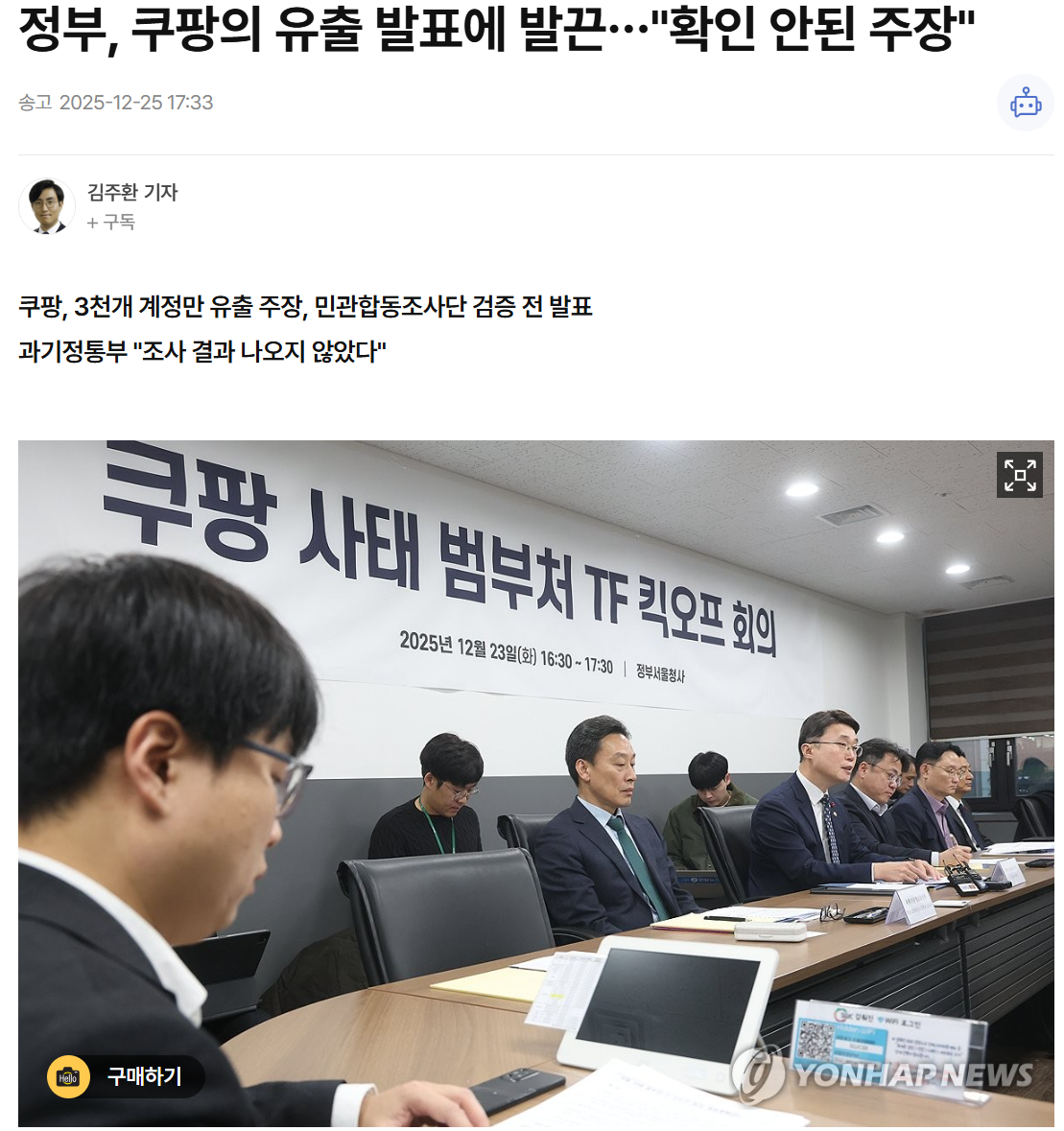 Subject   속보] 쿠팡 "정부 지시 따라 유출자 자백 받고 기기 회수"