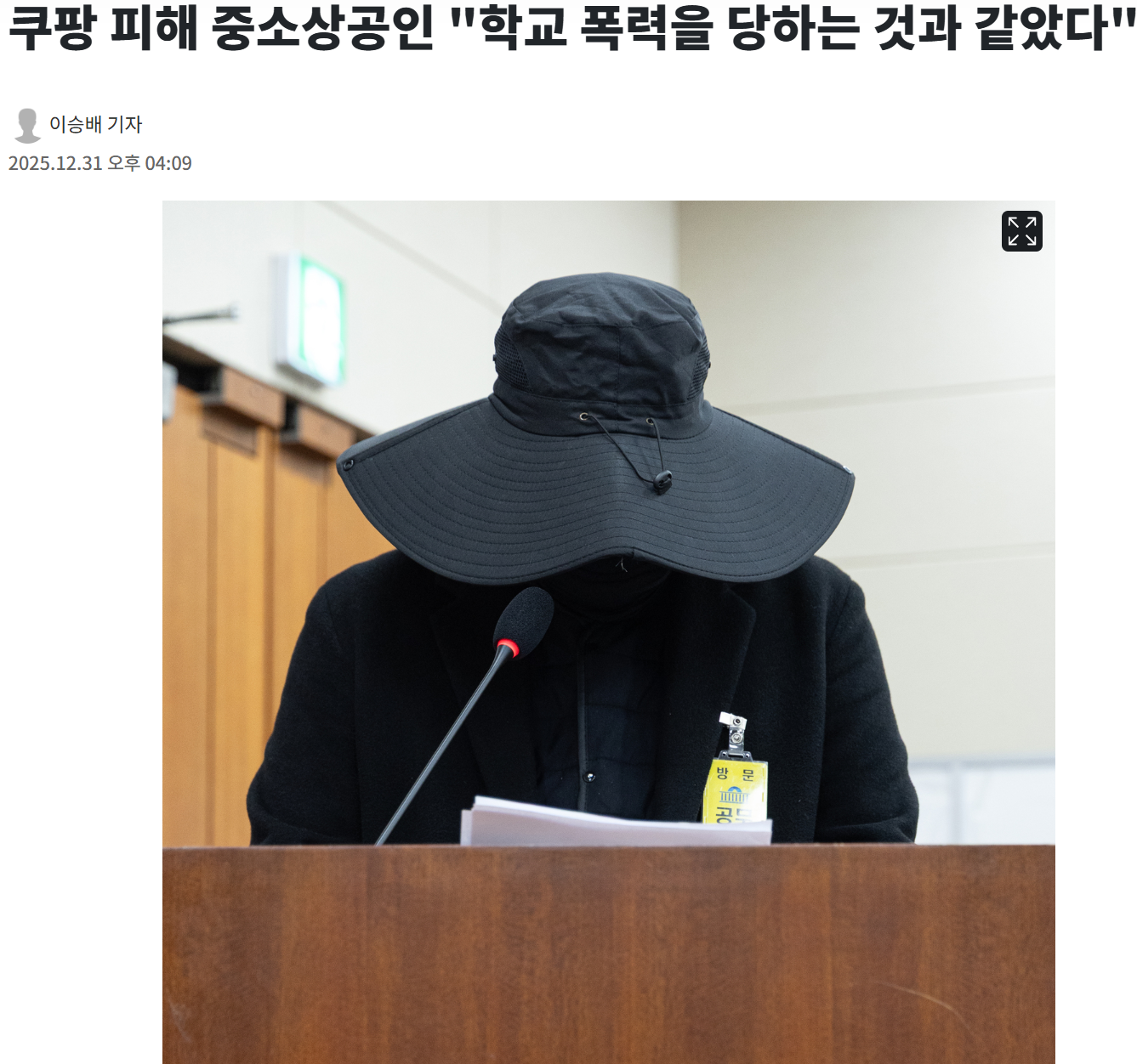 | Subject | 쿠팡 피해 중소상공인 "학교 폭력을 당하는 것과 같았다" |