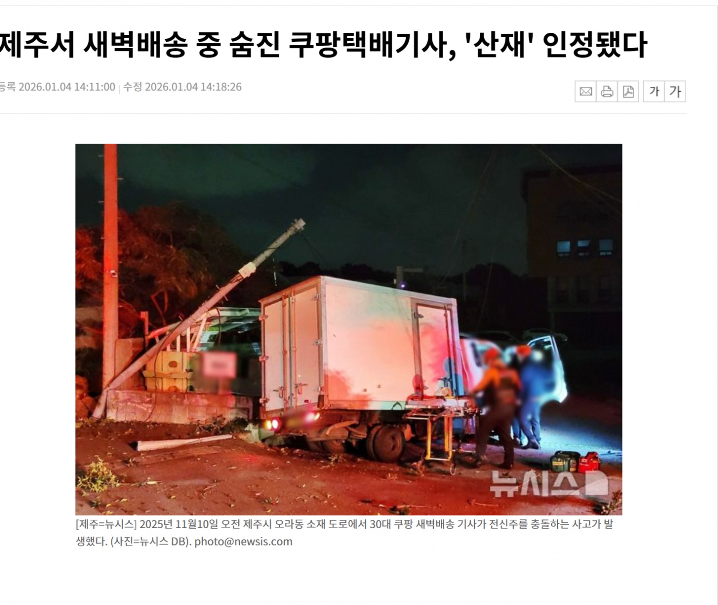 | Subject | 제주서 새벽배송 중 숨진 쿠팡택배기사, '산재' 인정됐다 |