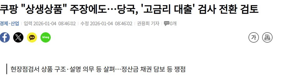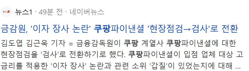 정치금감원, '이자 장사 논란' 쿠팡파이낸셜 '현장점검→검사'로 전환 3 |