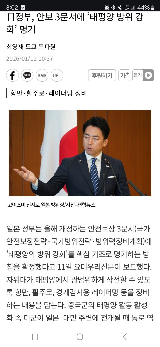 | Subject | 日정부, 안보 3문서에 ‘태평양 방위 강화’ 명기 |