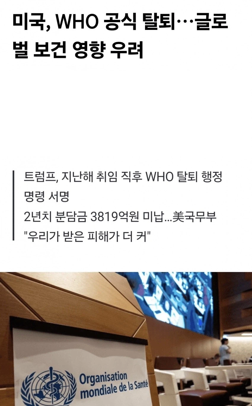 Subject   미국, WHO 공식 탈퇴…글로벌 보건 영향 우려
