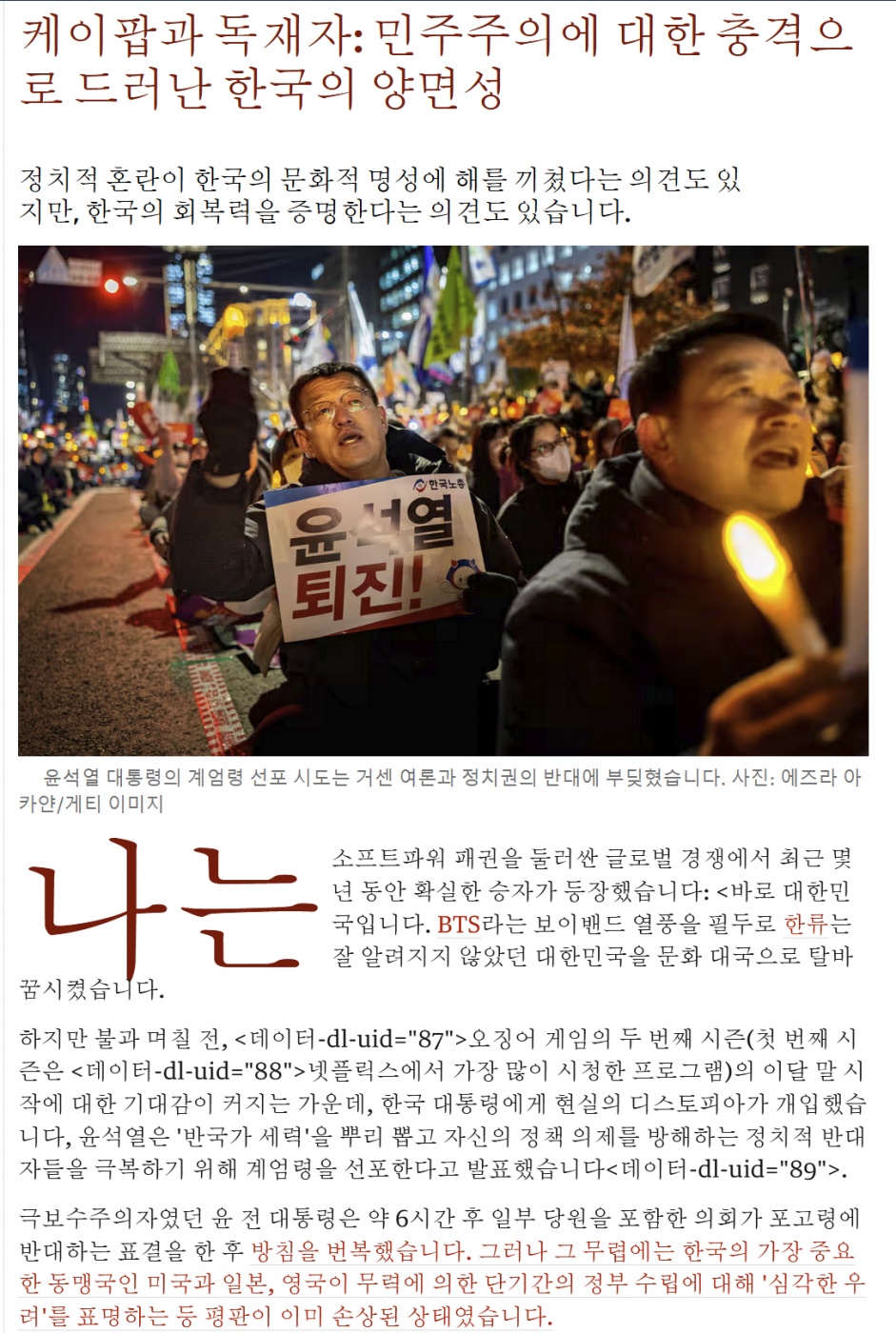 국제K팝·한류의 나라로만 알았는데…"계엄사태, 韓 '두 얼굴' 들춰" 8 |