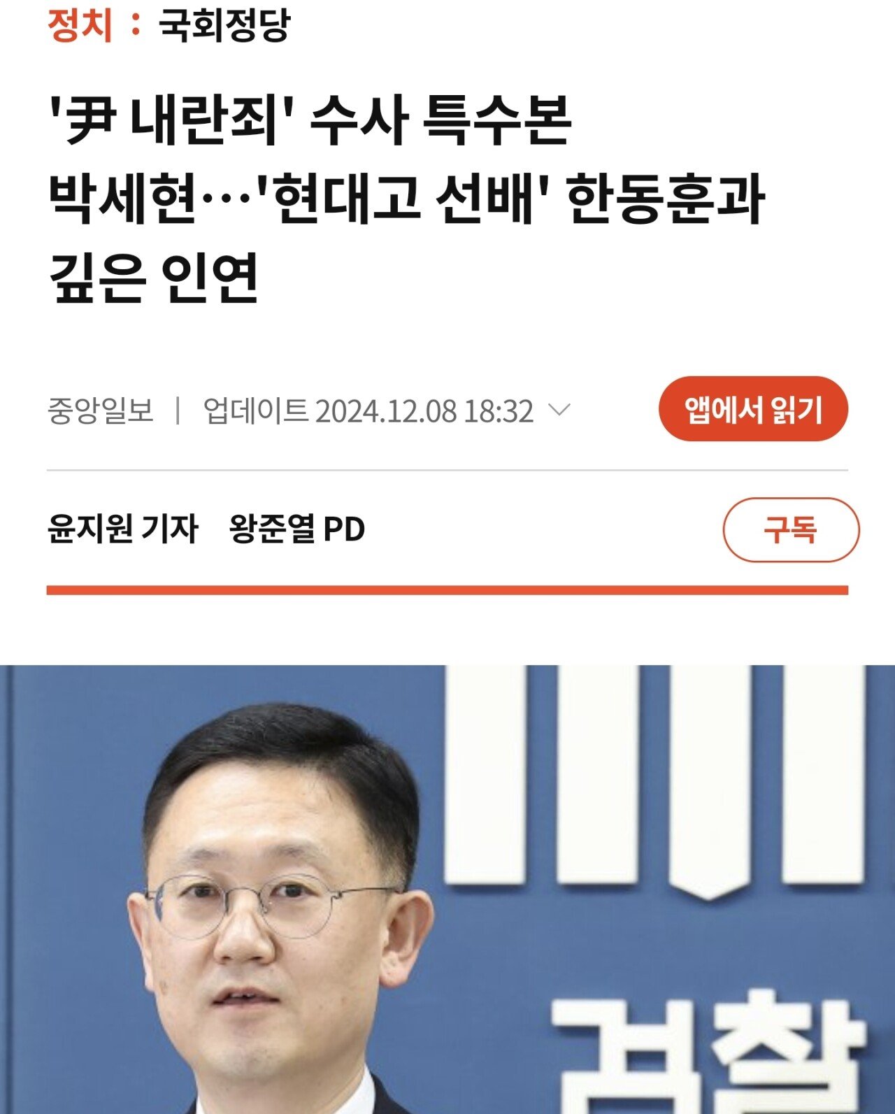 특수본 박세현 '현대고 선배' 한동훈과 깊은 인연