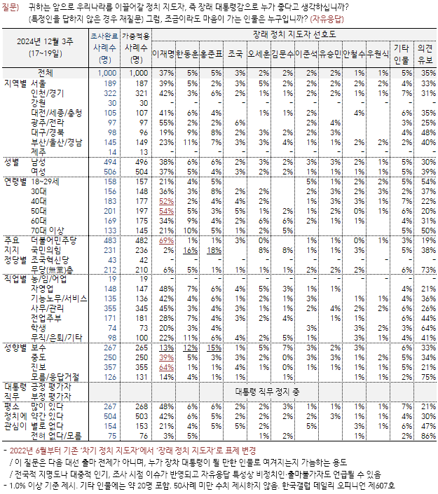 데일리 오피니언 제607호(2024년 12월 3주) - 장래 정치 지도자 선호도, 경제 전망