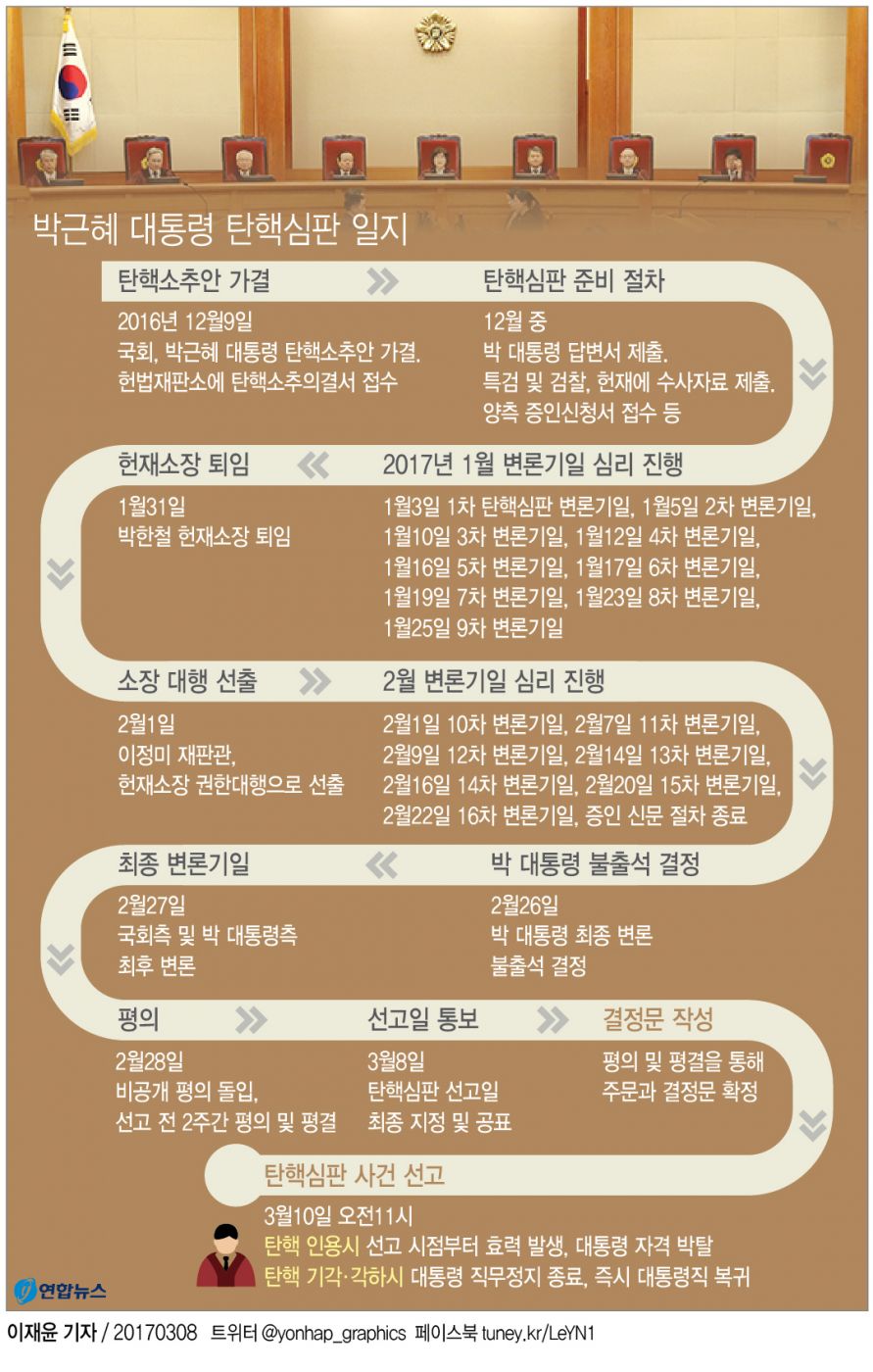 헌재는 지난 3일 열린 2차 변론준비기일에서 1월14일과 16일, 21일, 23일, 2월4일에 변론기일을 열겠다고 밝혔다. 설 연휴가 있는 1월 다섯째 주를 제외하고 1월 내내 매주 화요일과 목요일 재판을 통해 윤 대통령 탄핵 사건을 집중 심리한다는 방침이다. 주 2회 재판은 박근혜 대통령 탄핵심판 때와 비슷한 주기다. 2월4일 뒤 추가 기일이 잡히지 않는다면 다섯차례 변론을 마치고 결론이 나올 수도 있다.