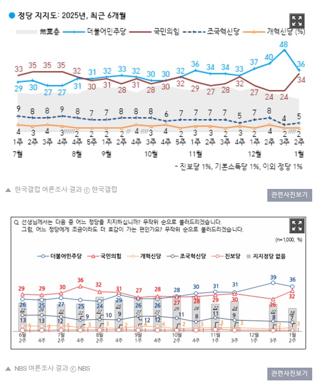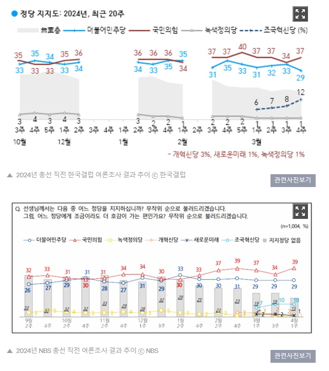 [첫번째 사진은 2025년 1월 시점의 여론조사, 두번째 사진은 2024년 총선 직전의 여론조사입니다] (중략) 이번주 여론 조사 결과로 국민의힘 지도부는 야당에 대한 공세를 더욱 강화할 것이다. 윤석열 대통령도 한층 더 높은 수위의 헌정 파괴를 선택할 것이다. 자신의 관저 시위 덕분에 보수가 결집하고, 집권여당의 지지율이 상승했다고 믿고 있을테니 말이다. 많은 국민이 헌정 질서를 파괴하고, 이를 옹호하는 집단의 지지율이 어떻게 상승하고 있는 것인지 의문을 가질 수 있다. 하지만 이런 의문을 차치하더라도 국민의힘의 이런 전략을 어디서 많이 봤던 거 아닌가? 지난 2024년 총선 직전 여론조사 결과를 살펴보면 향후 다가올 대통령 선거 결과도 가늠해볼 수 있다. 총선 직전 집권여당의 상태는 어땠는가? 물론 비상계엄 직전보다 나은 상황이겠지만 크게 다르다고 볼 수 없었다. 대선에 승리한 정당 대표를 내쫓고, 재보궐 선거를 발생시킨 당사자를 사면시켜서 재출마시키고, 자신이 내리 꽂은 당 대표를 다시 내쫓은 뒤에 꽂은 비대위원장과 갈등을 일으켰다. 이를 넘어서 의료갈등을 일으키더니 선거 막바지에는 대국민 담화를 통해서 물가는 안정됐고, 의정 갈등은 오롯이 의료계의 책임이라고 밝혔다. 이때도 총선 전략은 '이재명은 안 된다' 뿐이었다. 국민은 권력을 마구잡이로 사용하는 대통령에게 분노했다. 그런데 여론조사 결과도 국민의 민심과 동일했을까? 국민 다수가 분노한 상황에서 집권 여당의 지지율은 어땠을까? 놀랍게도 총선 직전까지 국민의힘 지지율은 갈수록 상승했다. 위의 2024년 갤럽 정당지지율 추이를 살펴보자. 등락은 있었지만 2월 3주차 이후 단 한번도 민주당보다 낮은 수치를 기록한 적이 없다. 게다가 총선 바로 직전인 3월 4주차에는 민주당을 오차범위 밖 결과로 앞섰다. NBS도 마찬가지다. 2월 4주차 이후 민주당보다 계속 높은 수치를 기록했다. 선거 직전 주에는 민주당보다 10%p 더 높은 지지율을 기록했다. 당시 조국혁신당의 지지율을 민주당과 합쳐도 국민의힘과 오차범위 내 결과를 기록하고 있기 때문에 지역구 선거에선 접전을 예상할 수밖에 없는 수치다. 그런데 결과는 어땠을까? 모두가 다 아는 대로 보수정당 역사에 남을 패배를 기록했다. 간신히 개헌 저지선을 지켰을 뿐, 192석의 야당세력을 맞이하게 됐다. 그때도 지금과 다르지 않았다. "이-조 심판, 보수 결집, 우린 잘못한 것이 없다" 이 세 가지를 주요 선거 전략으로 사용했다. 지금 "이재명은 안 된다, 보수가 결집해야 한다, 탄핵에 반대한다"와 놀랍도록 똑같지 않은가? 최근 정치가 양극화 되면서 고관여층을 제외한 일반 국민의 민심이 잘 포착되지 않고 있다. 이들은 대개 이념성향으론 중도층, 정당에선 무당층에 해당한다. 연령별로는 2030세대가 다수를 차지하고 있다. 여론조사 결과에 드러난 단순한 정당 지지율 수치로만 판단하기가 더욱 어려워진 것이다. 하지만 선거는 그 어떤 방법보다도 확실하게 민심의 지표를 알려준다. 만약 보수결집이 국민의힘 선거 승리에 주요한 전략이었다면, 그리고 여론조사 결과대로 국민의힘 정당지지율이 액면 그대로 앞선 것이 사실이라면 이들은 대체 왜 패배한 것인가? 침묵하는 다수의 국민을 바라보지 않고 겉으로 드러나는 결과, 지지층의 행동만 민심이라고 생각했기 때문에 이들은 지난 총선에서 패배한 것이다. 그런데 그 전략을 지금도 똑같이 사용하고 있다. 국민의힘의 여론조사 결과 상승은 있는 그대로 받아들여야 한다. 보수가 결집했든, 중도층의 지지가 일부 회복했든 엄연한 사실이다. 하지만 선거에서는 이길 수 없을 것이다. 이미 2024년에 입증하지 않았나. 2020년 총선도 다르지 않았다. 황교안 대표가 탄핵의 강을 건너지 않고, 문재인 정부 심판에만 매몰되면서 참패했다. 2022년 탄핵의 강을 건너고 나서야 보수 정당은 대통령 선거에 승리할 수 있었다. 보수정당의 보수결집 전략은 필패라는 것이 과거 사례에서 명징하게 드러나고 있다. 그러나 아랑곳하지 않는다. 우선은 다수의 지지층에서 응원을 받고, 여론조사 결과가 크게 나빠 보이지 않기 때문이다. 국민의힘 지도부는 어제와 오늘 여론조사 결과에 고무됐을 수 있다. 김민전 의원이 백골단이라는 과거의 망령을 데려 온 기자회견에 대해서도 어떤 징계조치를 하지 않는 것을 보면 잘 알 수 있다. 이들은 보수 지지층이 불만을 가질 수 있는 어떠한 행동도 하지 않을 것이다. 오직 보수 지지층에게만 다가갈 것이다. 국민의힘이 이런 태도를 지속한다면 '조기 대선'이든 그들이 희망하는 '이재명 대표가 없는 대선'이든 패배할 수밖에 없다. 이건 천공처럼 주술과 점쟁이의 예언이 아니다. 과거의 사례들이 입증하는 것이다. 그들이 가장 공포스러워하는 것이 이재명 대통령이라면, 그들은 지금 누구보다 앞장서서 이재명 대통령의 길로 향해가고 있는 중이다. 출처: https://www.ohmynews.com/NWS_Web/View/at_pg.aspx?CNTN_CD=A0003095449 ========================================================================== 반민주주의 세력 청산의 관점에선 보수 결집이 문제지만, 이재명 대통령 당선에는 별 영향이 없을 이유. 도리어 역효과만