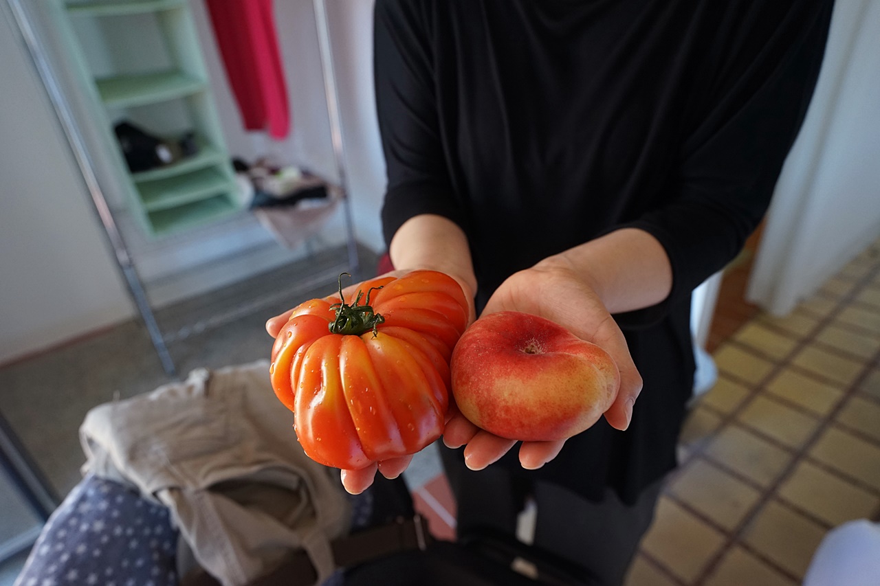 그리고 처음 본 토마토와 납작복숭아! 토마토도 맛이 강했고 납작복숭아도 맛있었는데 무엇보다 납작하니 먹기 좋아서 좋았습니다.ㅎㅎ