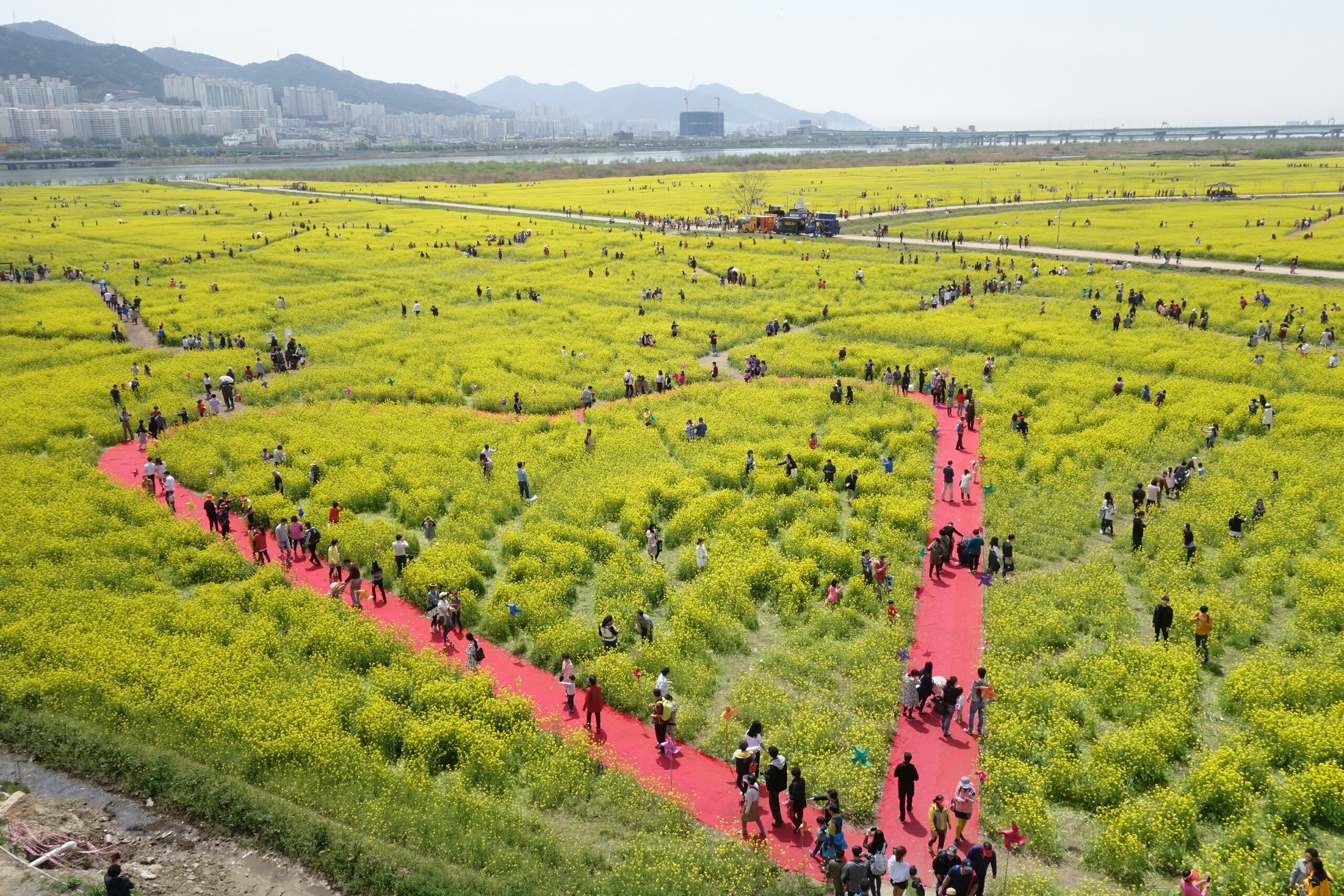 첫 사진 중앙에 보이는 다리 아래 유채꽃밭이 펼쳐져있어요.