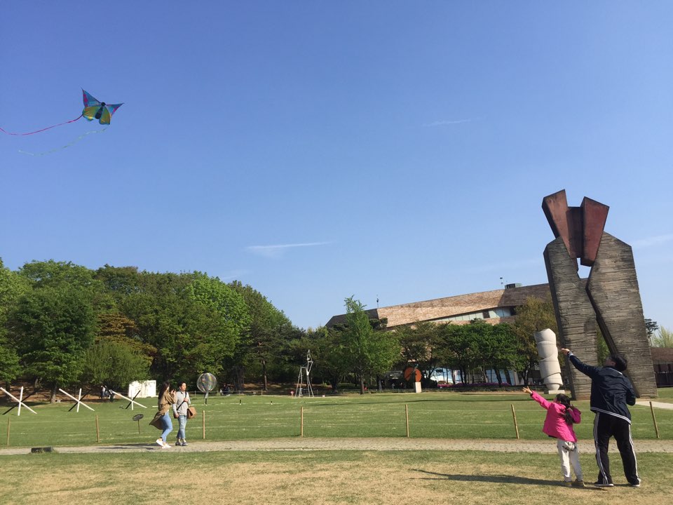 주말에 올림픽 공원에 가서 연을 날렸습니다.