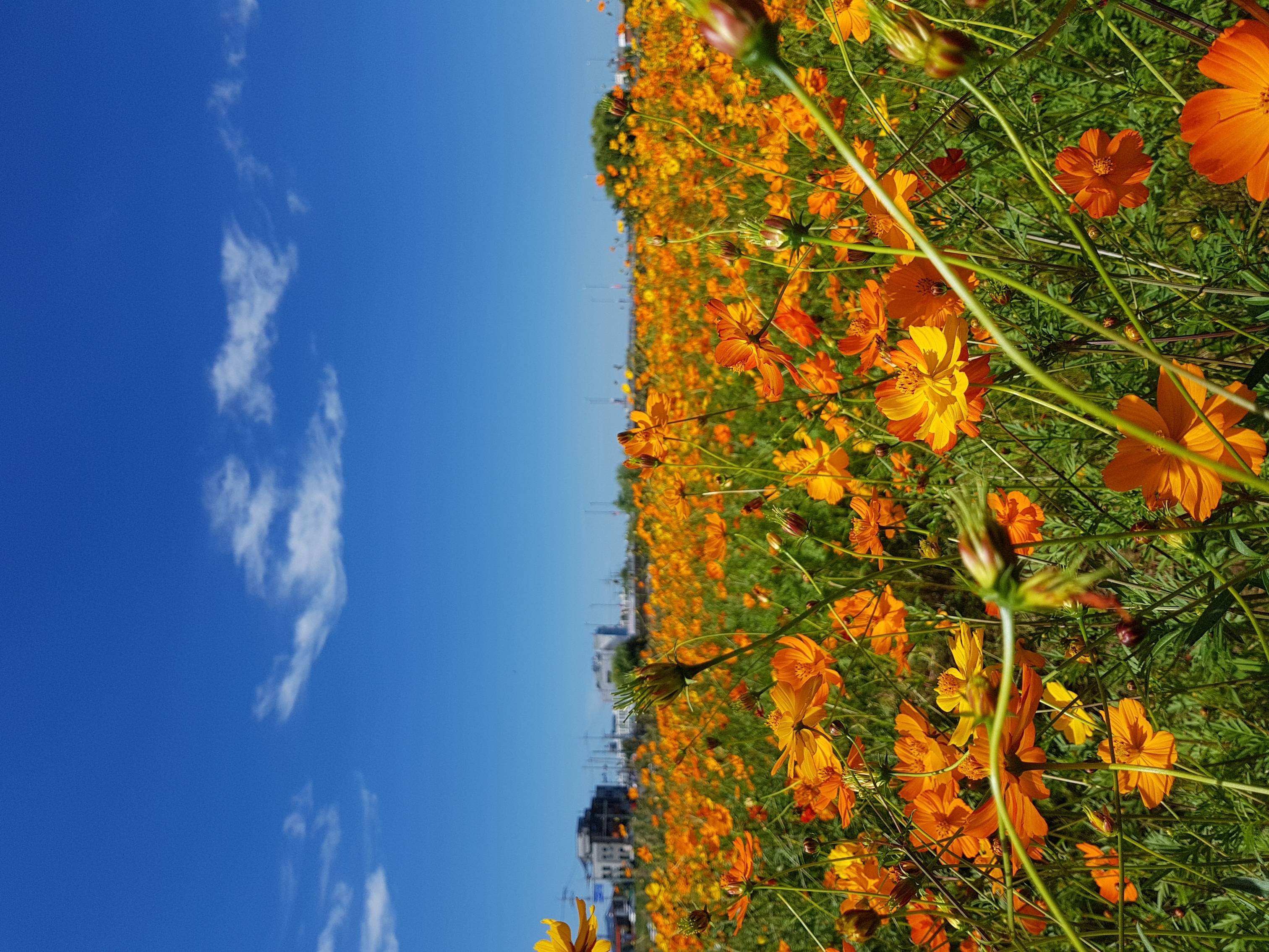 점심에 다녀온 오정동 강변. 하늘도 맑고 햇살도 뜨겁고 코스모스는 이쁘고.