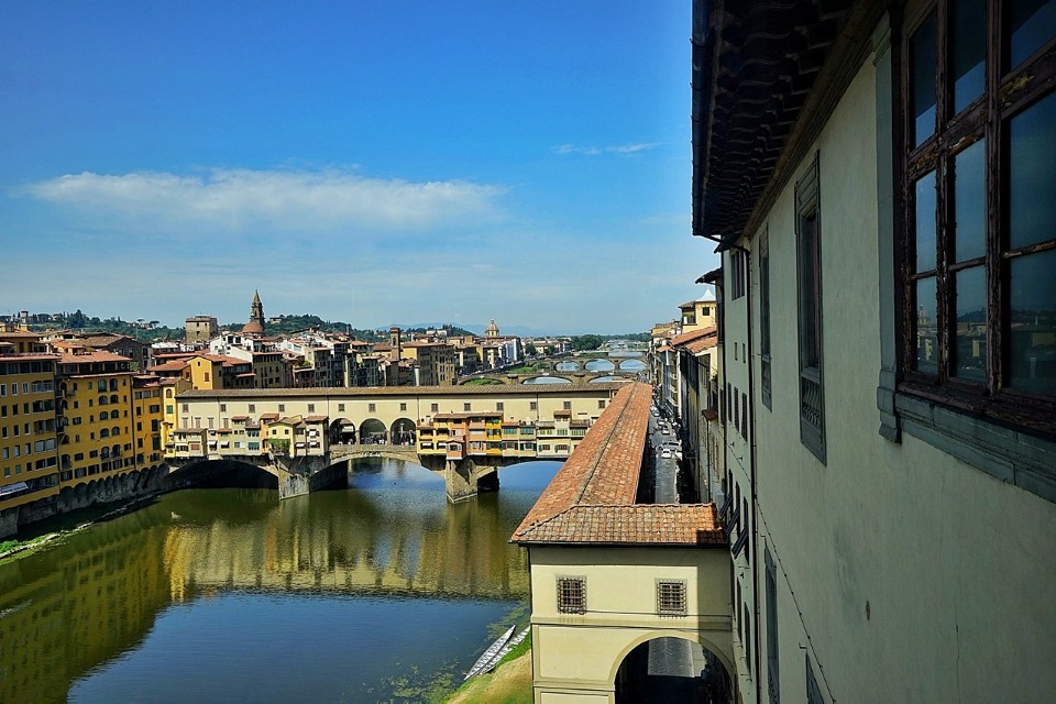 피렌체의 우피치 미술관 안에서 보이는 베끼오 다리의 모습입니다.