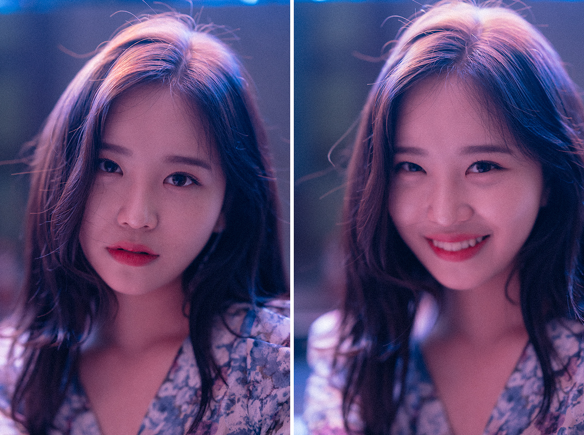 어젝 찍어본 네온사인 조명을 배경으로 한 사람 사진입니다