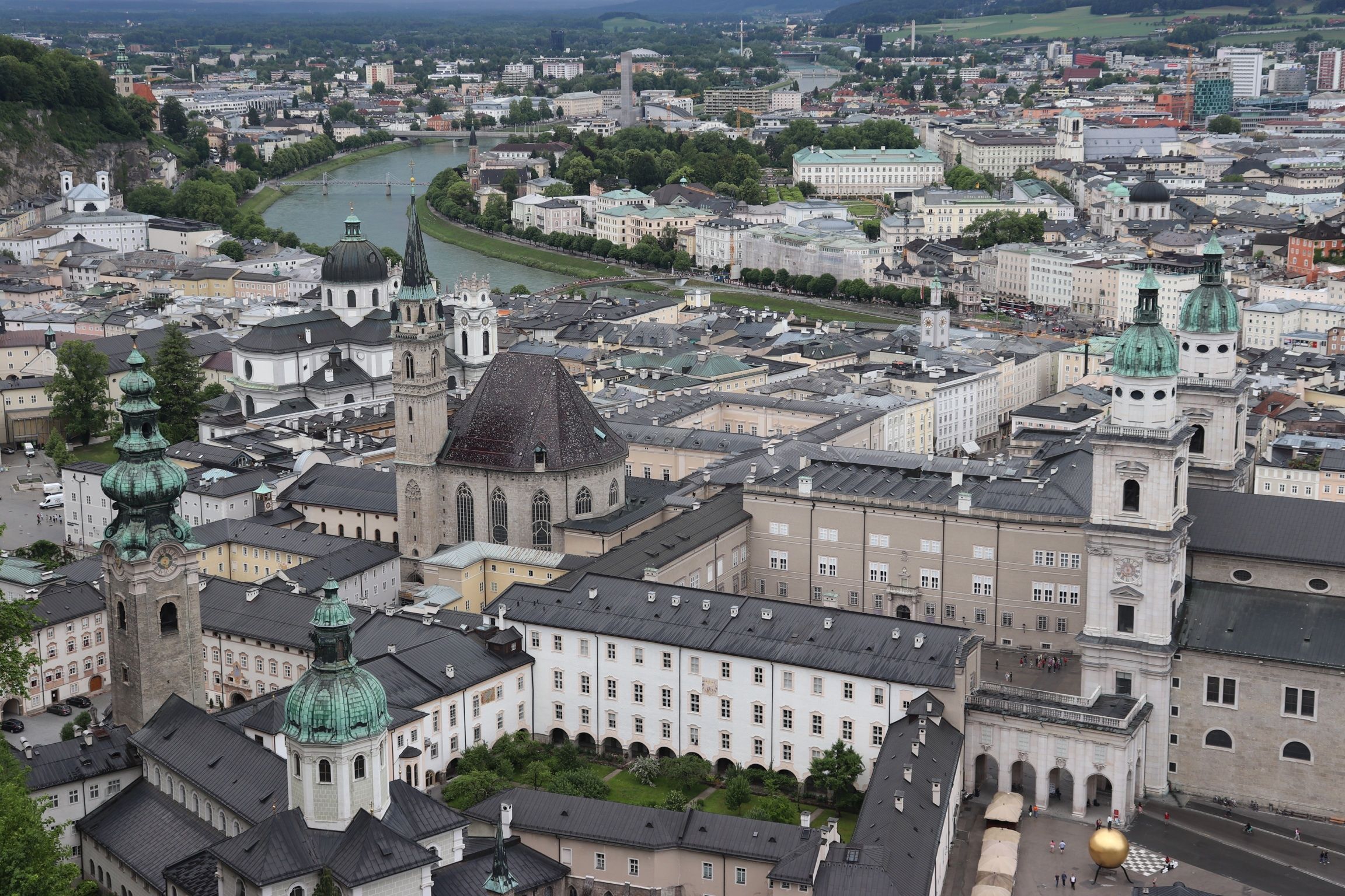 잘츠부르크의 에메랄드와 짙은 회색이 섞인 지붕들은