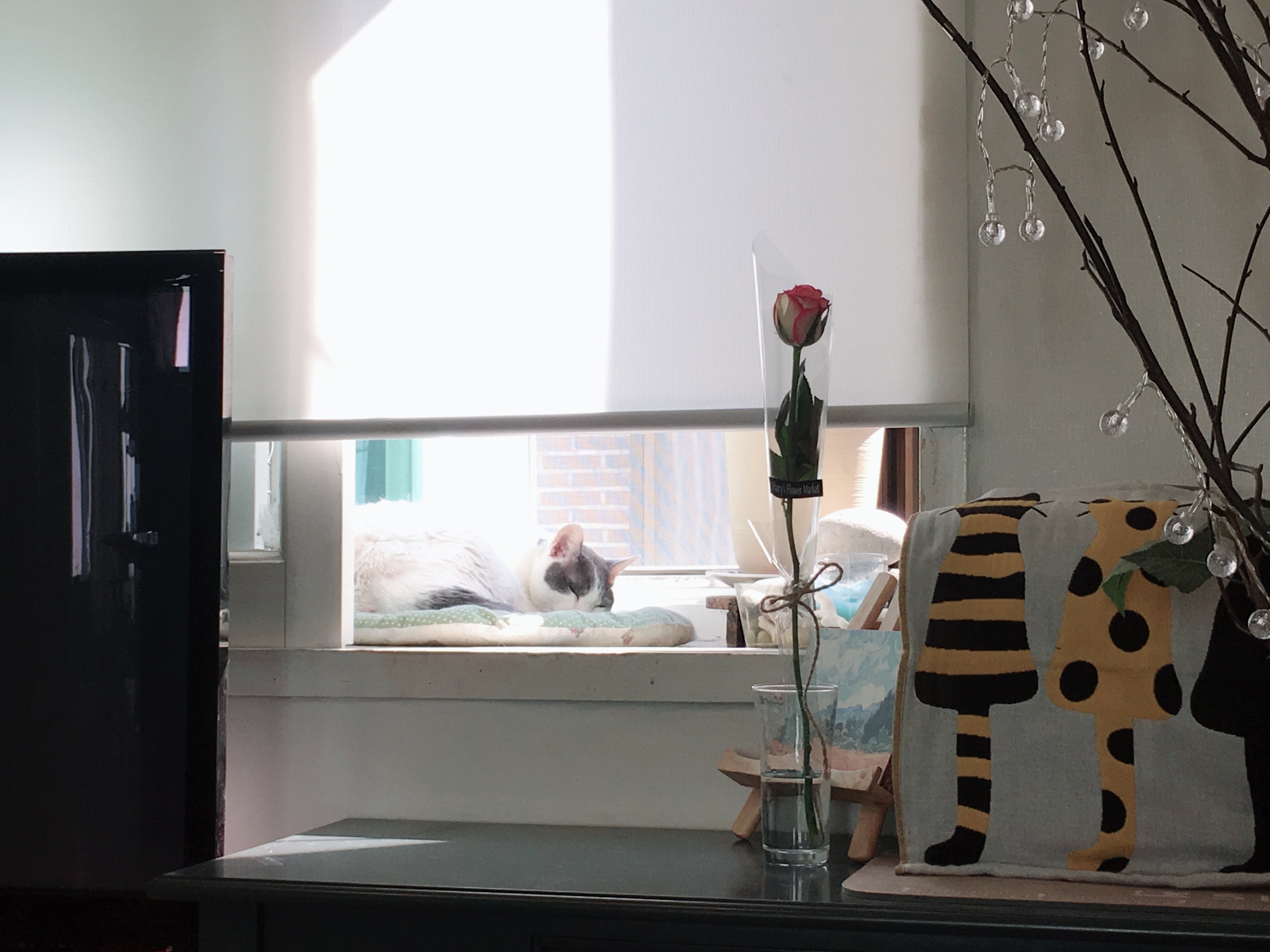 내 생각대로 그 자리는 고양이가 바깥구경을 하고 햇빛을 쬐는 공간으로 함께 해 왔다.