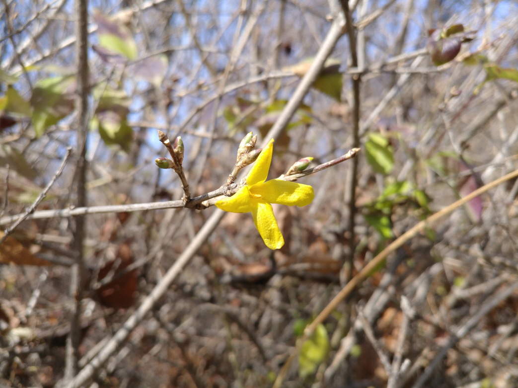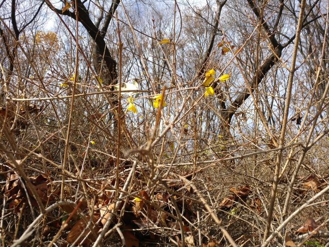 가끔 걷는 양재천변길 산책중 여기저기 피어나고 있는 개나리를 발견했다.
