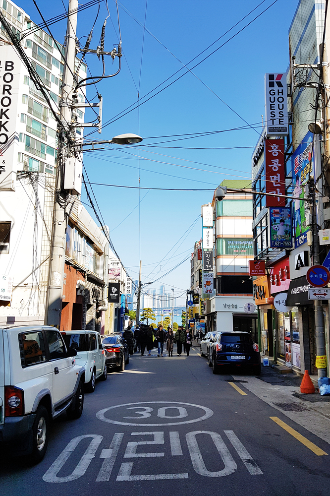 광안리 거리 사진은 거리와 함께 멀리 해운대쪽이 잘 보이게 찍고싶었는데