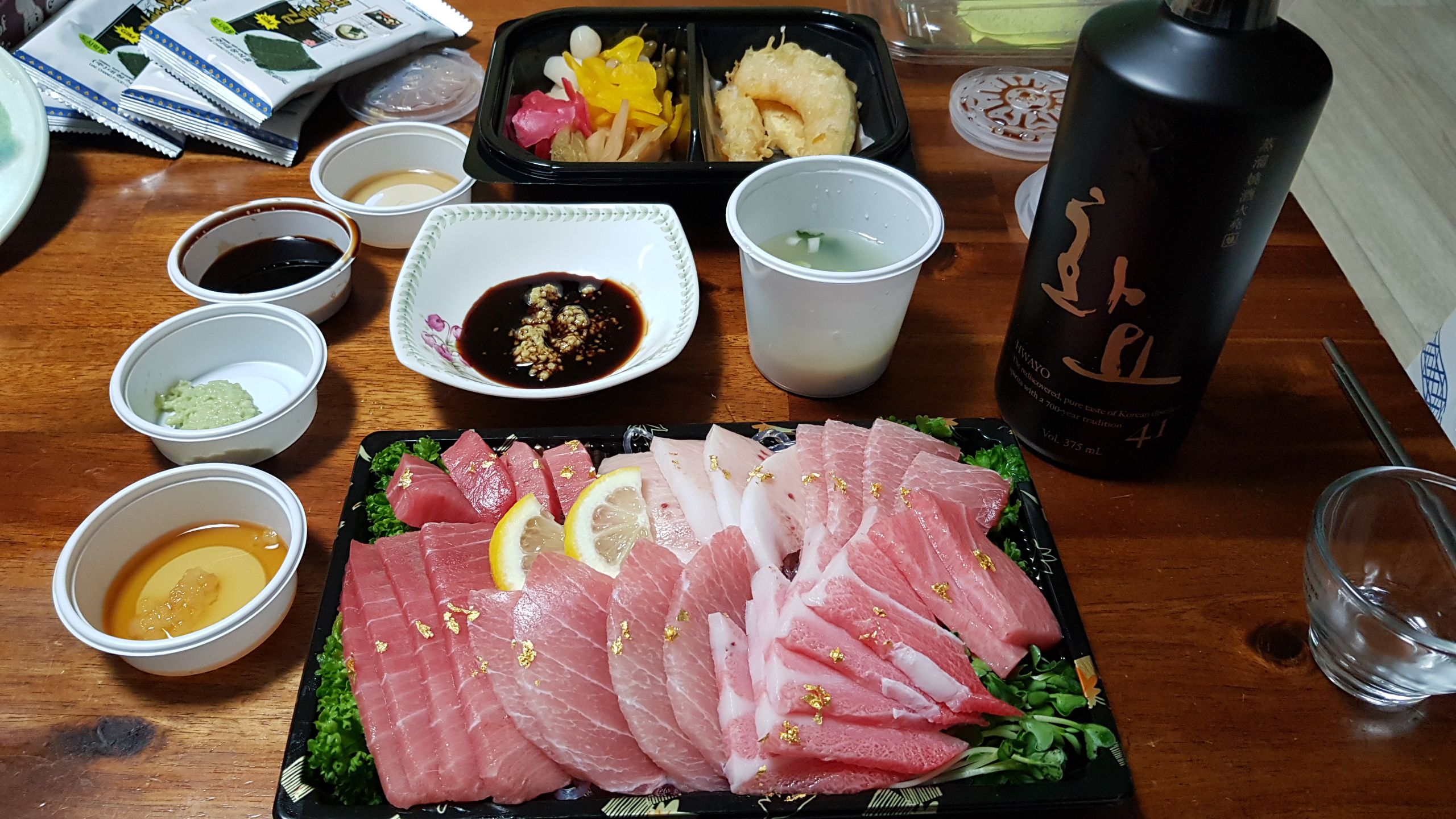 사실 오늘 저녁을 부모님 댁에서 간단하게 패스티발 누들을 때린후 집에와서 간단하게 돌돔이나 일키로 썰어서 소주한잔하려고 했읍니다. 그런데 마누라의 컷으로 짤린후 계속 징징대다가 맥주릉 2캔 때리고...마 내 그래도 휴간데 참치라도 좀 시키무모 안되나? 그랬읍니다. 그러니 띠껍게...그러던지...그래서 시켯읍니다.