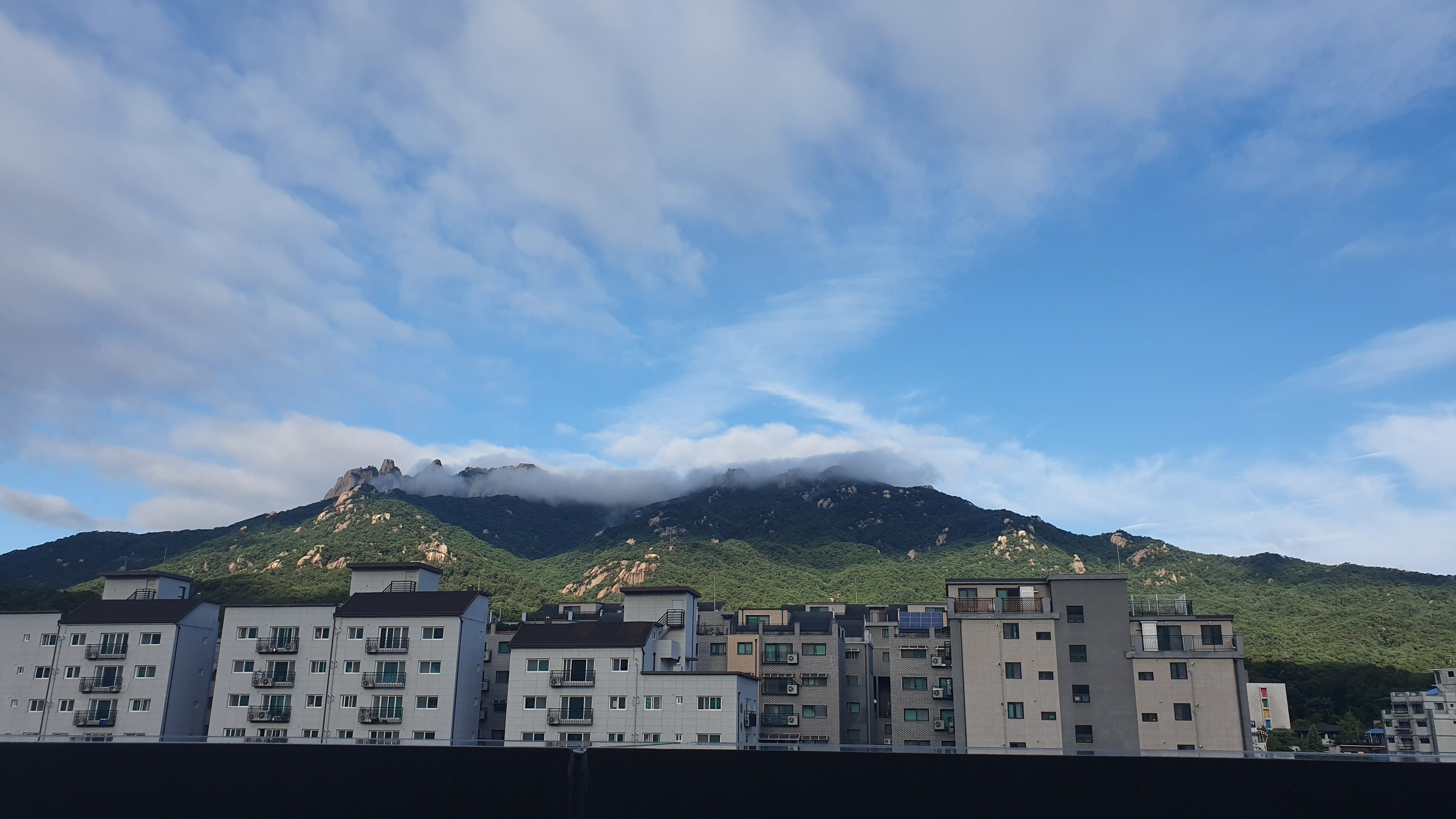 아침에 일어났더니 전날 비가와서 도봉산에 안개가 끼었네요.