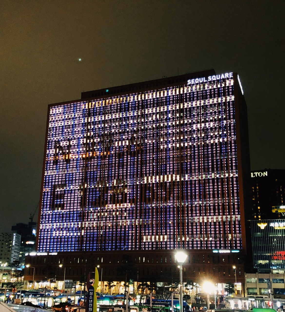 평창올림픽 시절인데 위워크보단 역시 서울스퀘어 로고가 더 좋습니다.  서울역 나서자마자 위워크 로고를 보면 회사생각에 골치가...