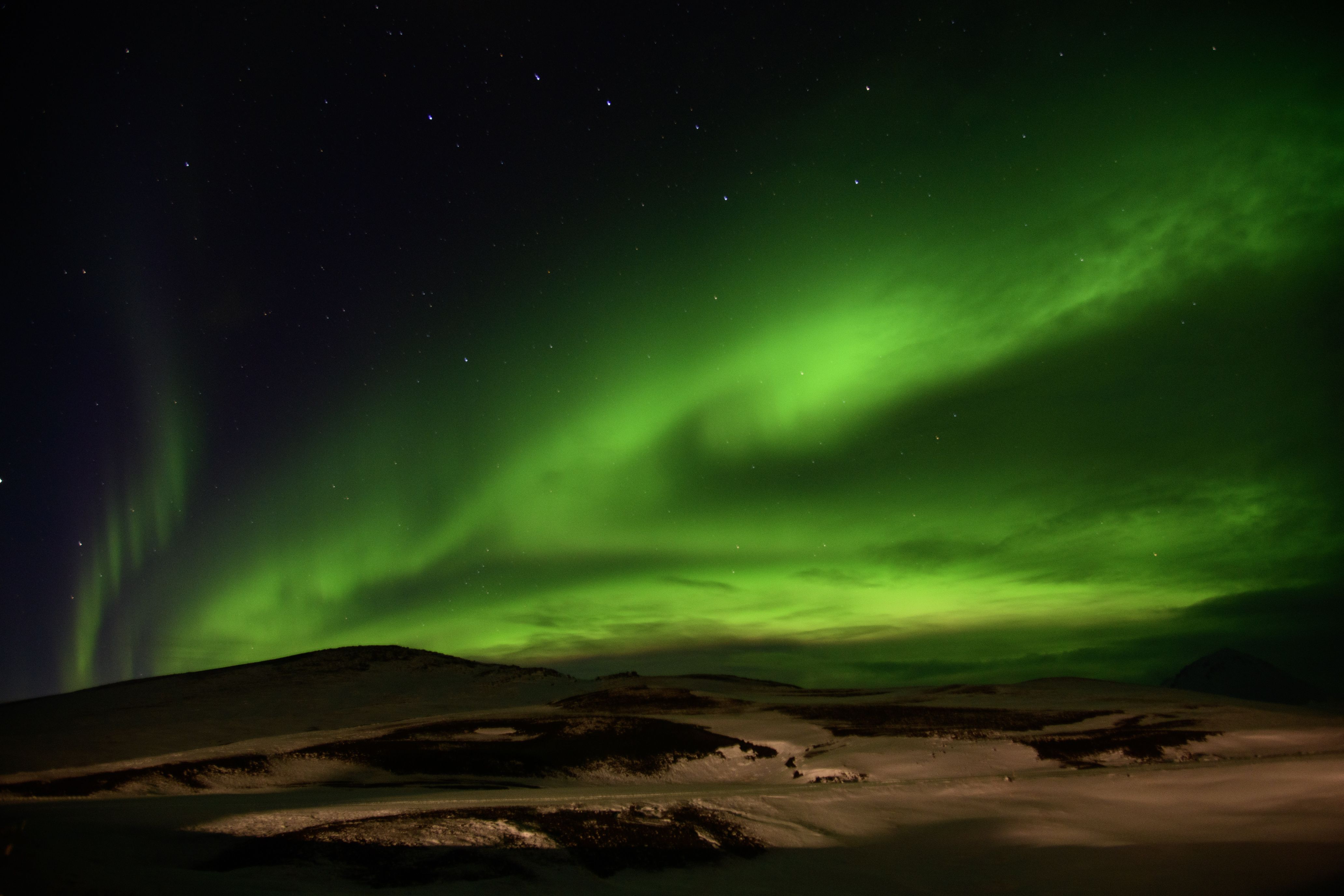강렬한 오로라에 뛰쳐나와 급하게 찍었는데