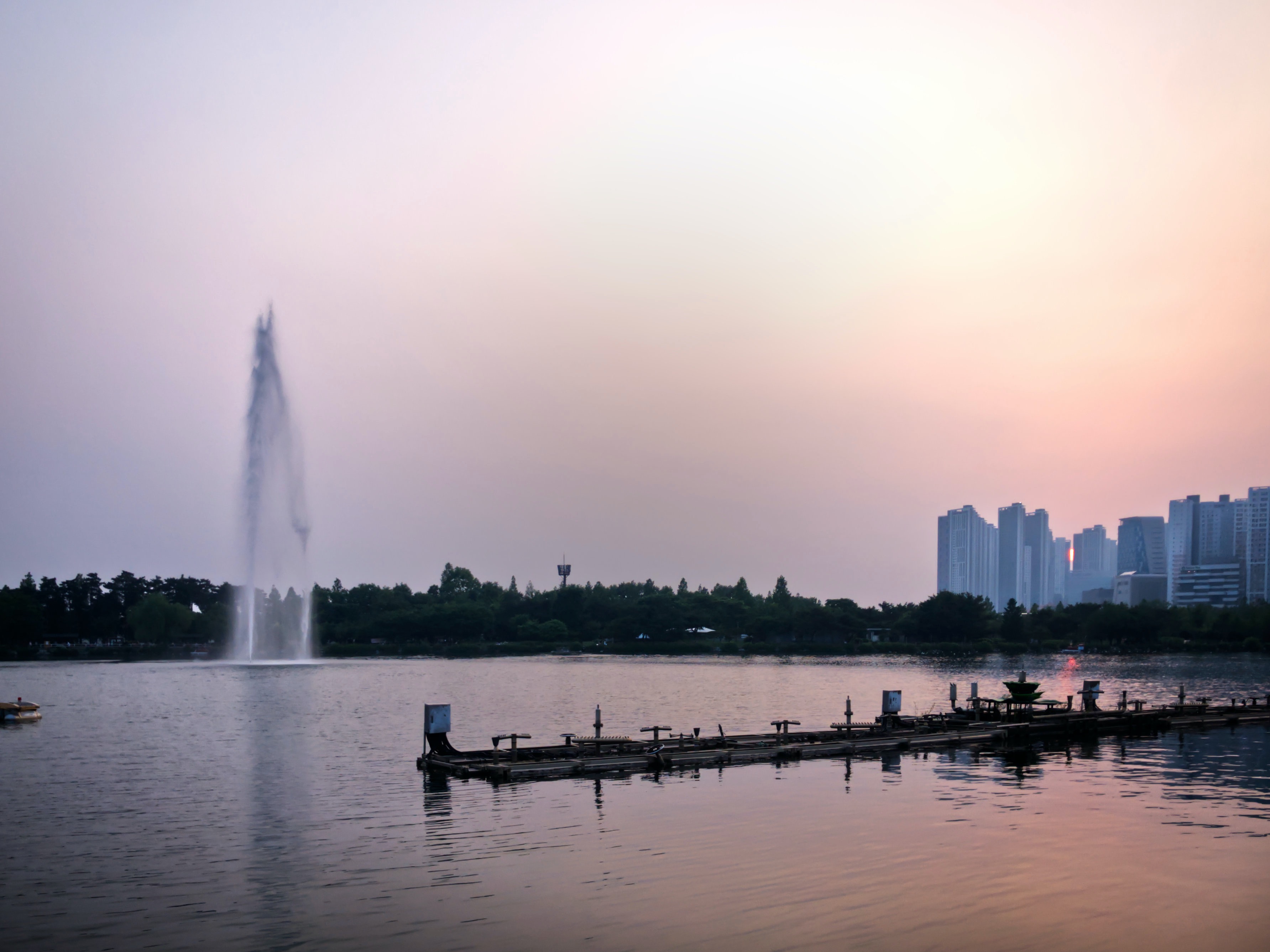 여름 쯤에 찍어둔 사진입니다. 호수 공원 주변을 산책하다가 아파트 사이로 쏙 들어가는 해가 찍고 싶었는데 마침 분수도 나오길래 그냥 둘 다 찍어버렸습니다. 이 시간대의 묘한 감성이 참 좋단 말이죠. 5