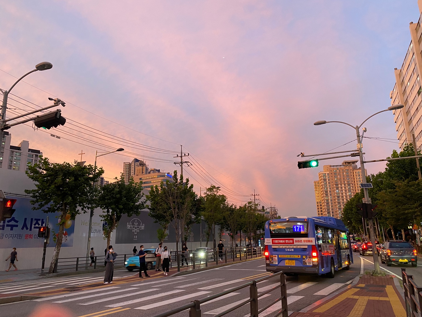 어제 퇴근길에 하늘이 예뻐서 찍어봤읍니다 ㅎㅎ