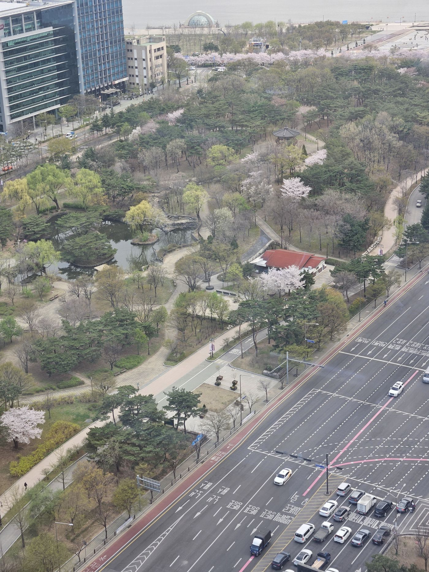 20층 정도의 높이에서 본 꽃핀 공원입니다