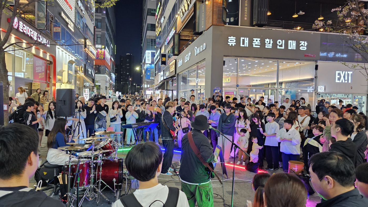 시끌시끌하길래 가봤더니 신나는 밴드의 버스킹 공연이 있더군요.