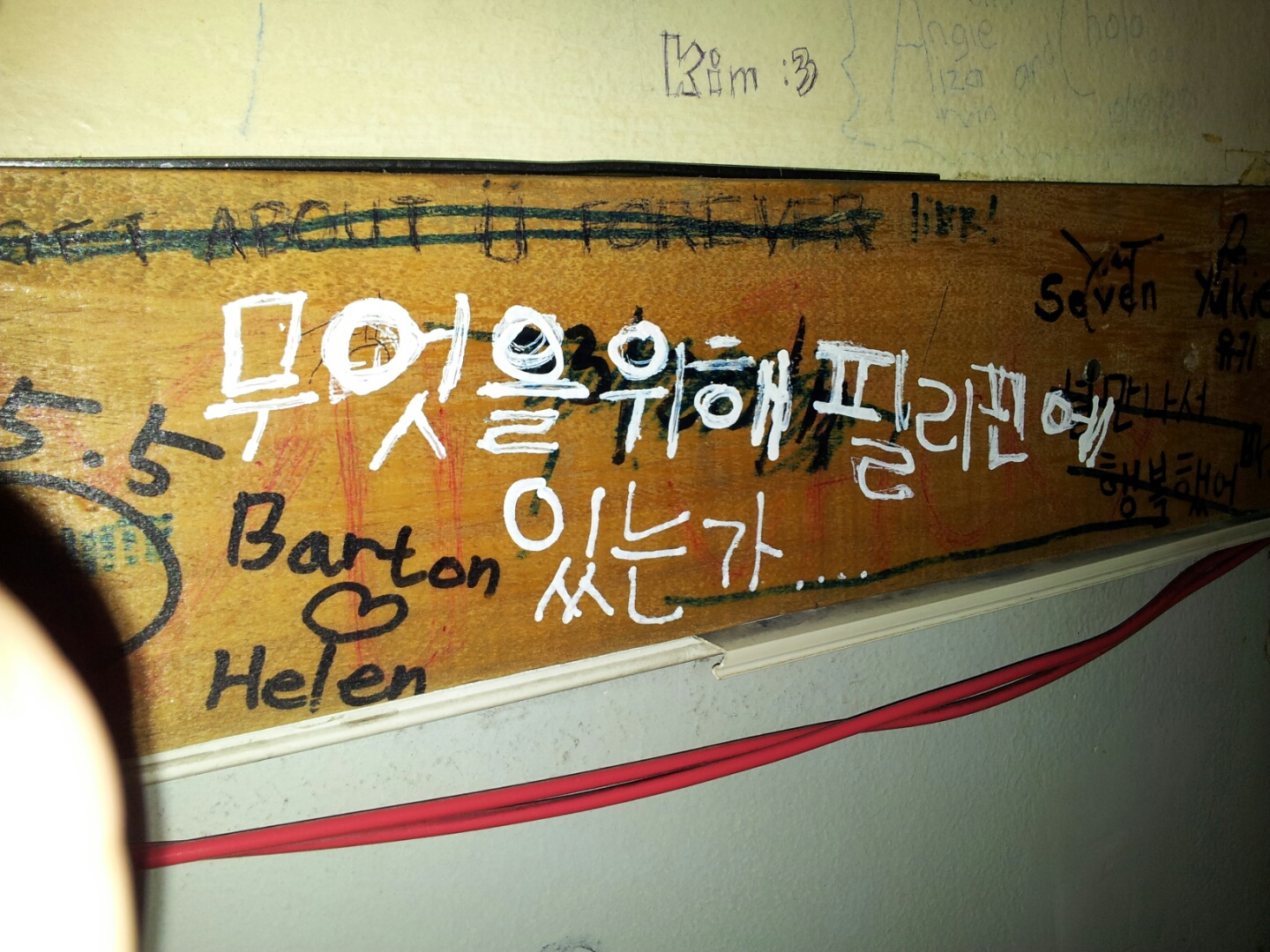 하나는 주말에 어학원 근처 술집 벽에 적힌 낙서입니다.