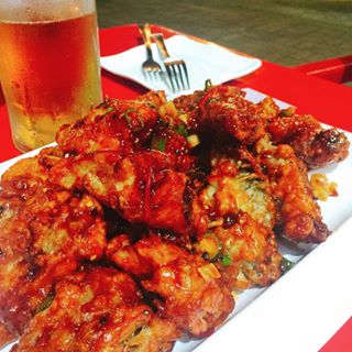 오늘 날씨도 괜찮아서 여자친구랑 밖에 나와서 치킨먹습니다 참고로 물어보는 사람잇을까봐 맵스터치킨입니다