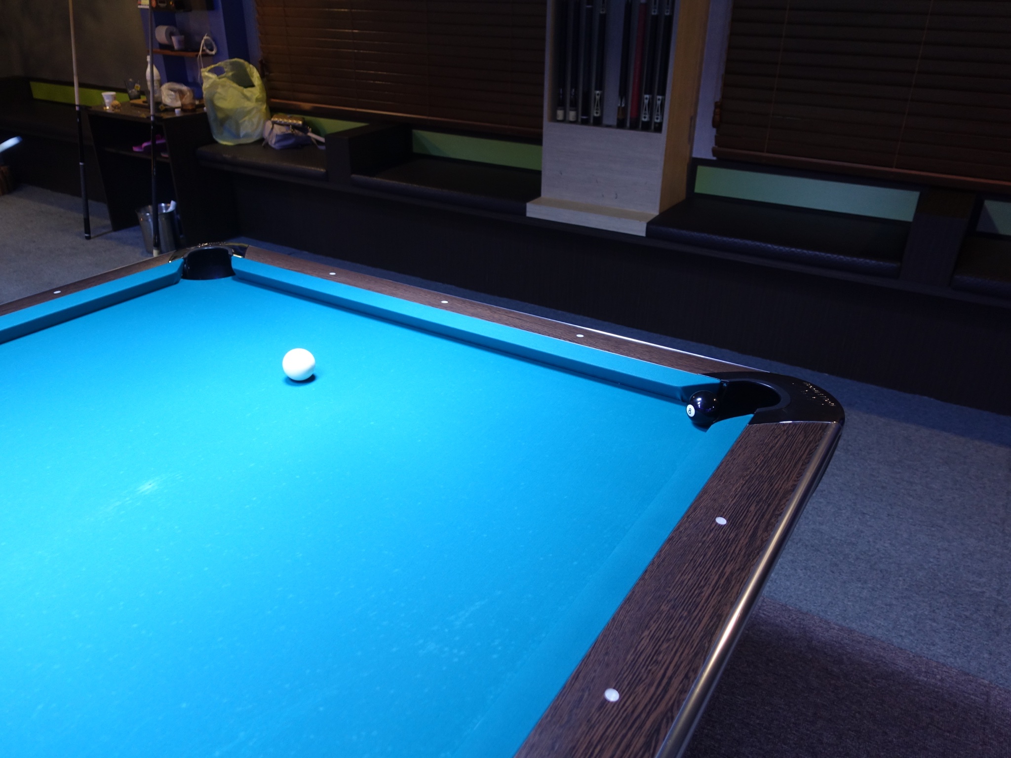 마지막 8번공을 포켓 입구에 세워놓고 그는