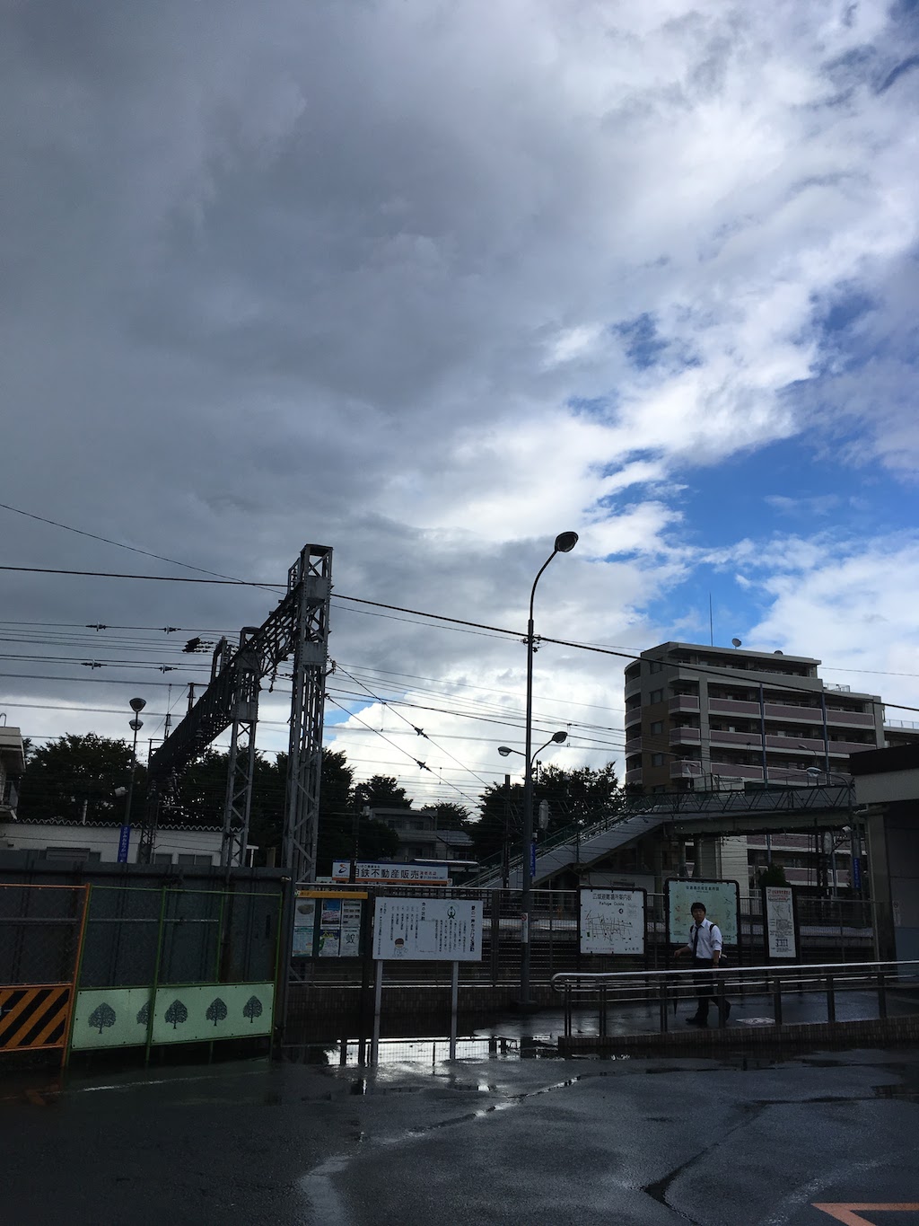 구름이 엄청난 속도로 지나다니고 있었는데 역 앞에서 한장 찍어봤습니다.