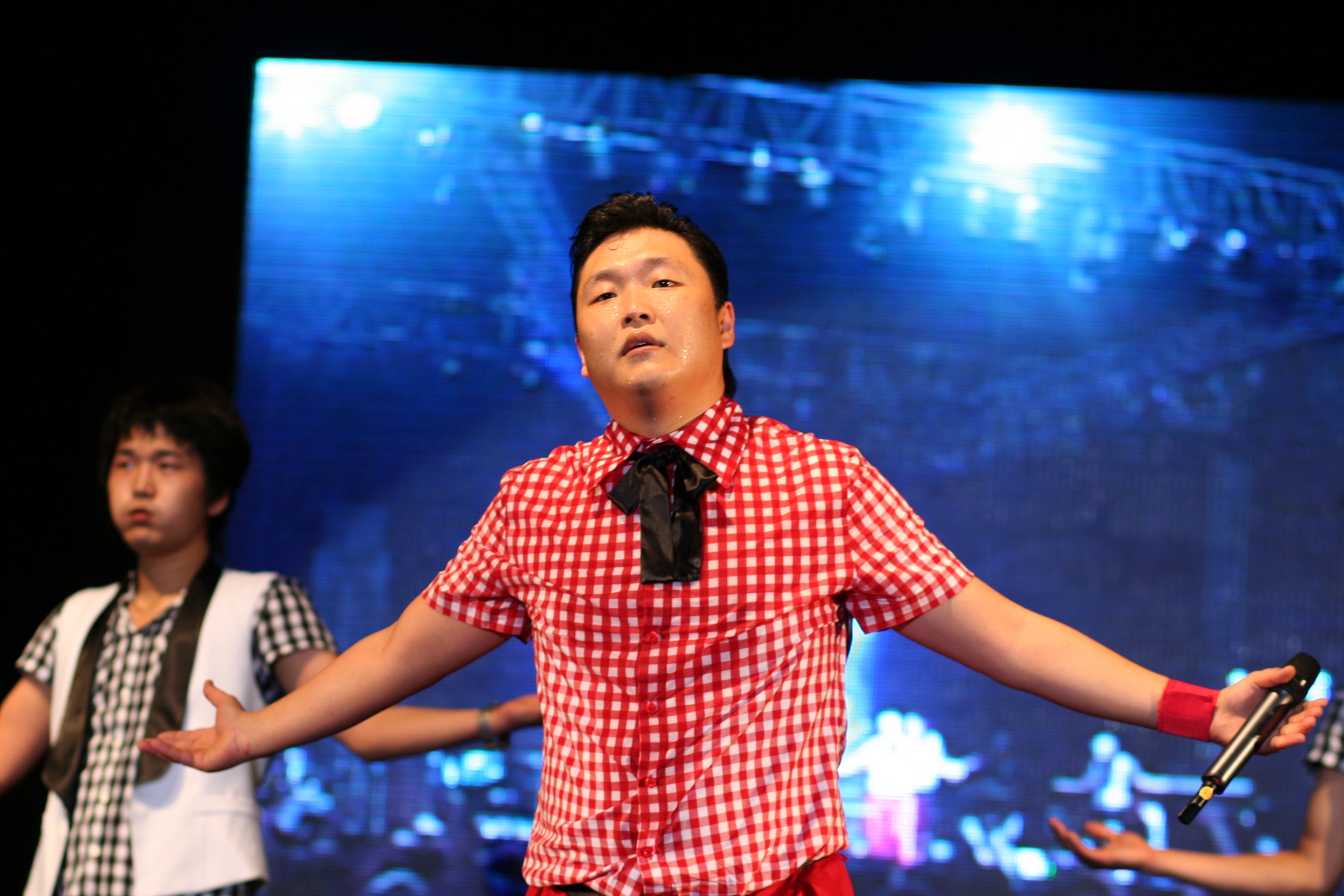 싸이가 두 번째 군대가기 직전....의 학교 축제때 찍은 사진입니다.
