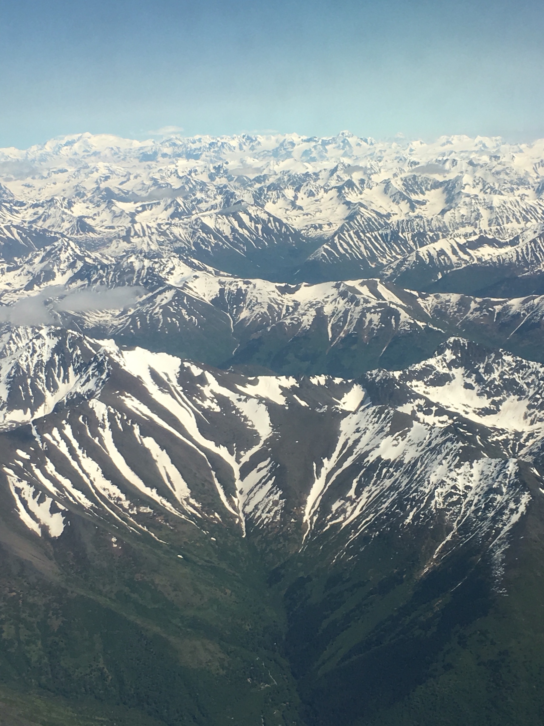 지난 5월 말에 뭔가 현실도피도 하고 싶었고 북태평양의 경치가 넘 그립고 또 세금환급 받은 돈도 있고 해서 그냥 뱅기표, 숙소, 렌트카만 잡아놓고 혼자 알래스카로 날아갔었습니다. 알래스카로 가는 비행기에서 찍은 사진 한 컷. 제인 오스틴의 <오만과 편견>의 한 구절이 생각났었어요. "What are men to rocks and mountains?" iPhone 6s 4