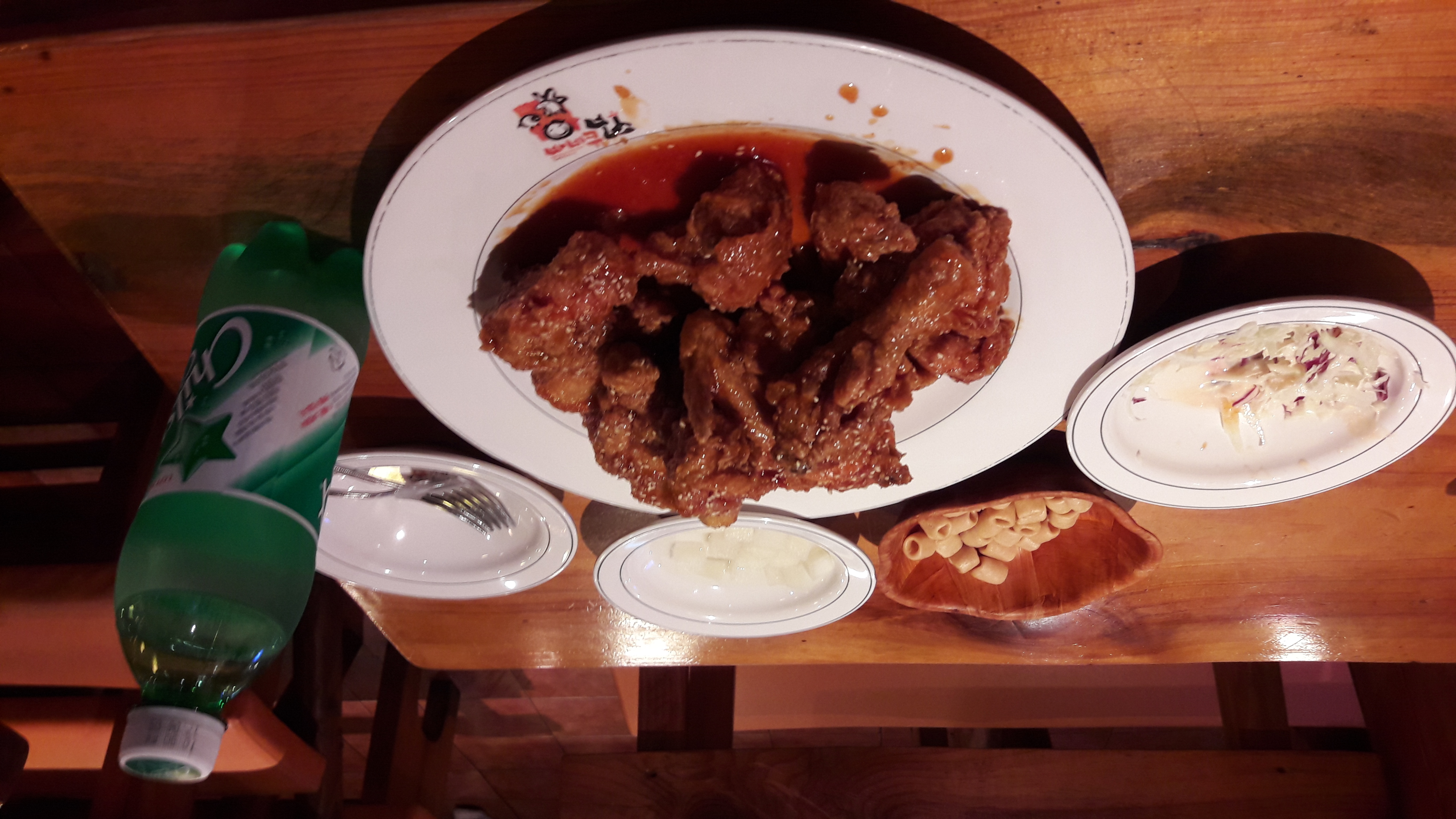 치킨집에서 치킨 먹고 있어요. 혼자. 0