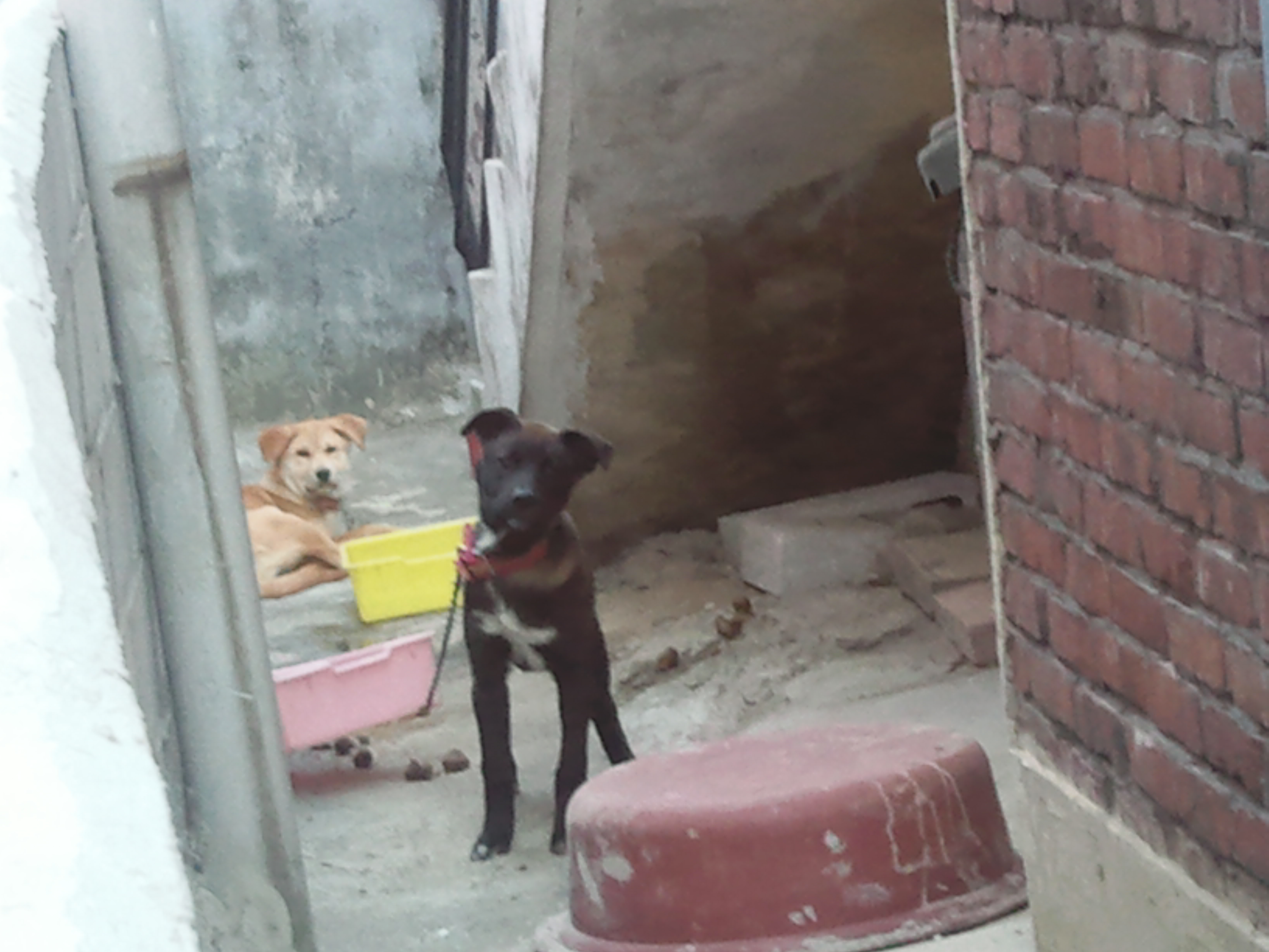 길을 가다보니 집과 집사이 틈같은 곳에 개 두마리가 좁은 틈으로 사람 지나가는 것을 구경하고 있네요.