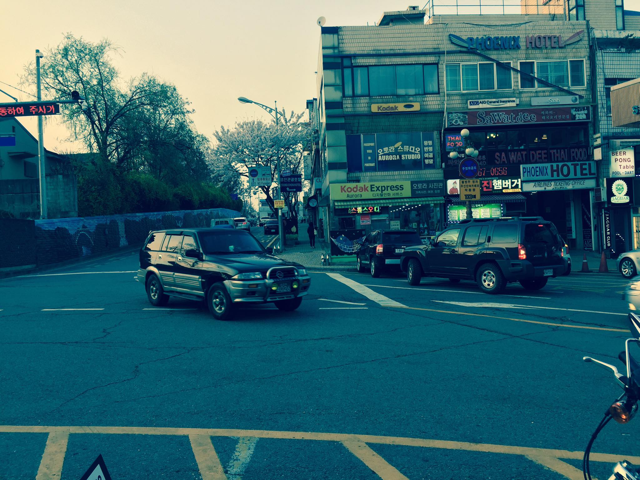 작년 봄에 송탄의 미군부대(오산 공군기지) 정문 앞에서 찍은 사진입니다.