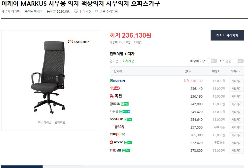 듀오백 Q1W가 나왔습니다. 또 찾다보니 이케아 마르쿠스? 이 제품을 추천하는 분들이 많더라구요.