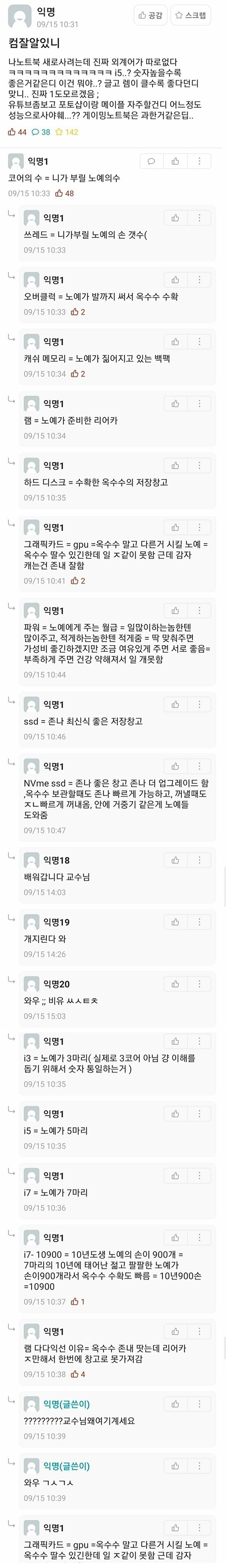컴터 맞출려는데 도움이 필요하여요! 괴력몬으로 비유한거랑 해서 같이 있던 글이 있었던것같은데(괴력몬짤은 찾음) 짐꾼이 많네 짐을 한번에 많이 지고 갈수 있네없네 하던걸로해서 ㅎㅎㅎ 잘부탁드려얌 더불어서 한 5년+@로 더 쓴다고생각하고 사무용으로 쓸려면 i3-9000정도면 괜찮을까얌? 0